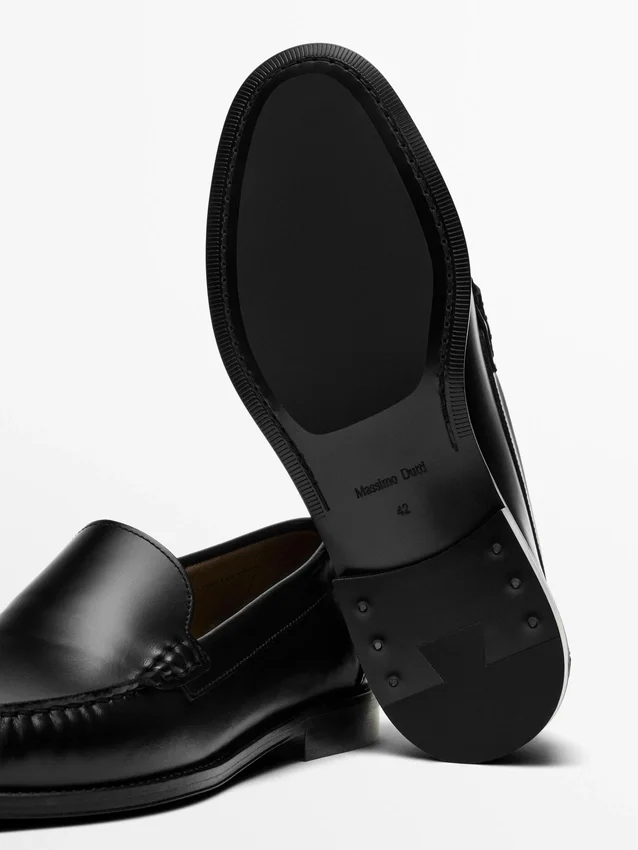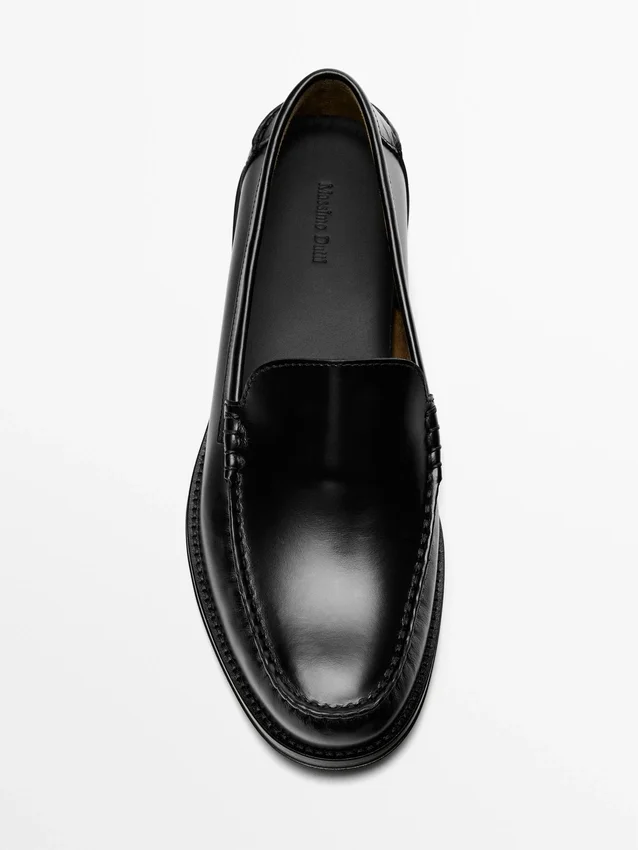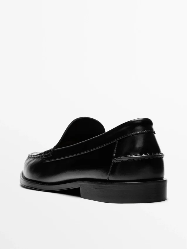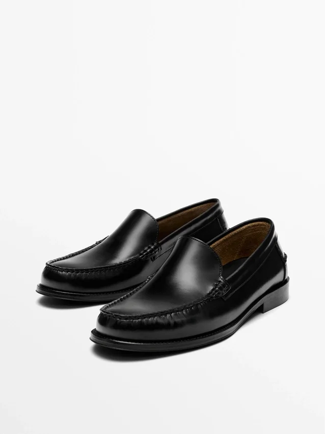 Gemaakt van rundleer. Effen bovenwerk met bijpassende stiksels. Leren voering en binnenzool. Gemaakt in Portugal.