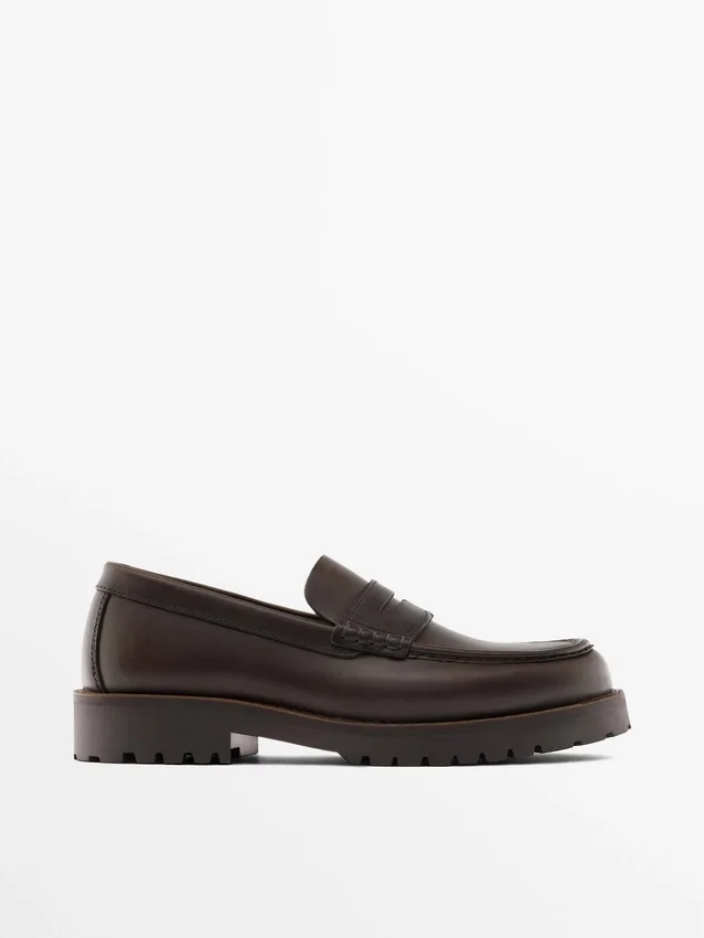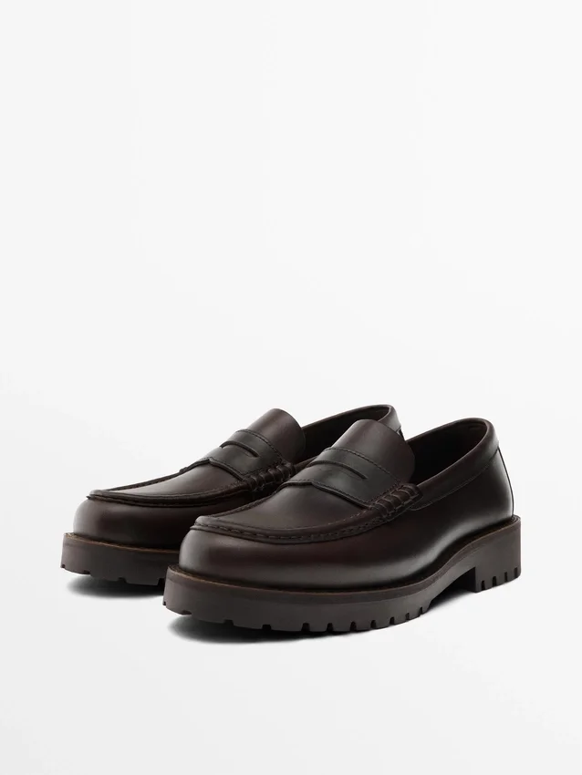 Gemaakt van rundleer. Iets dikke zool. Penny-riempje. Moc-neusdetail. Leren voering en binnenzool. Gemaakt in Portugal.