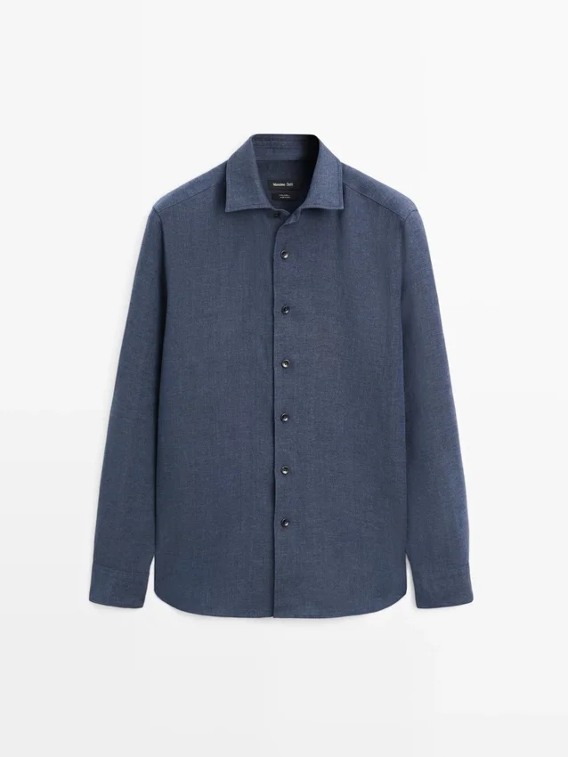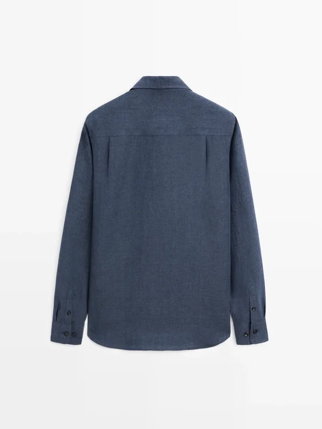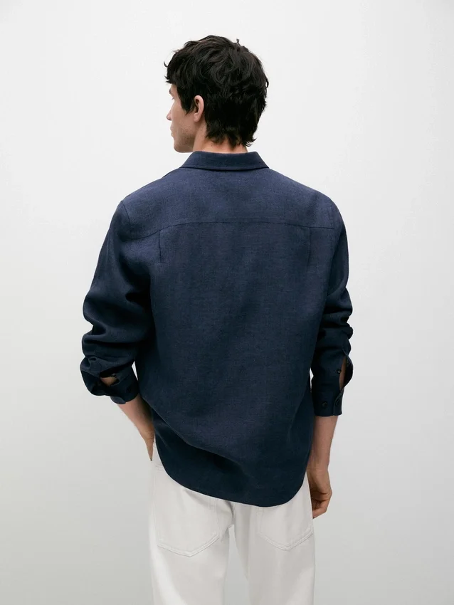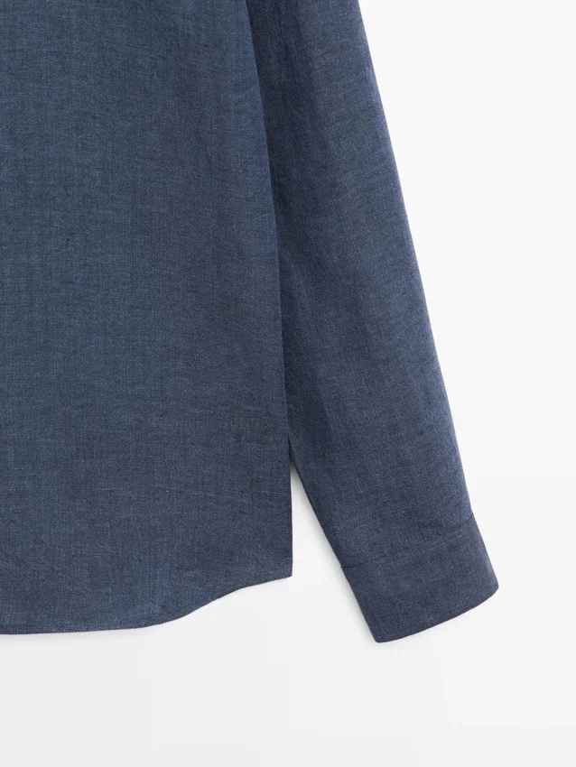 Overhemd gemaakt van 100% linnen. Lange mouwen met manchetten met knopen. Overhemdkraag. Voorkant met knopen.