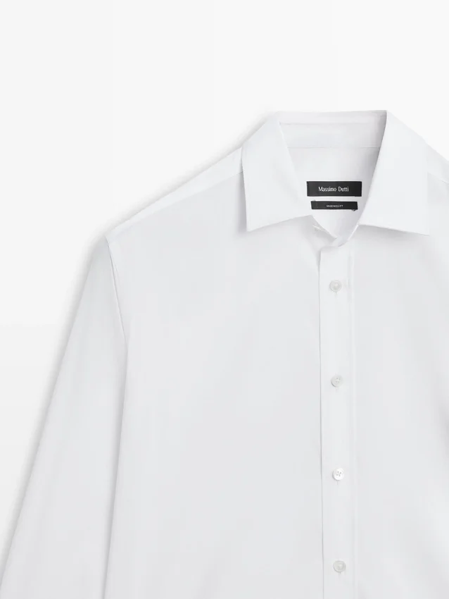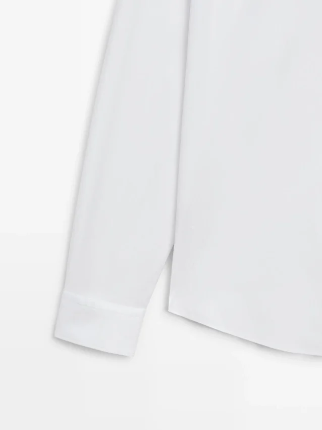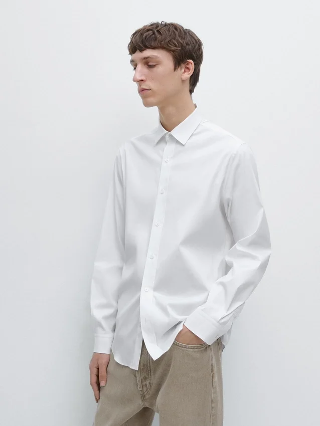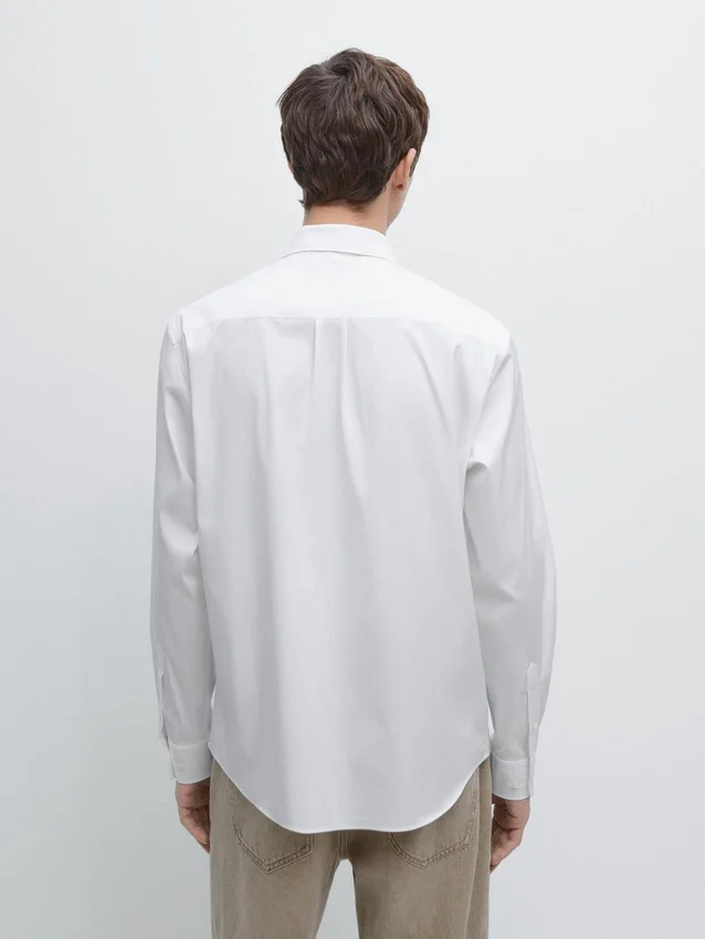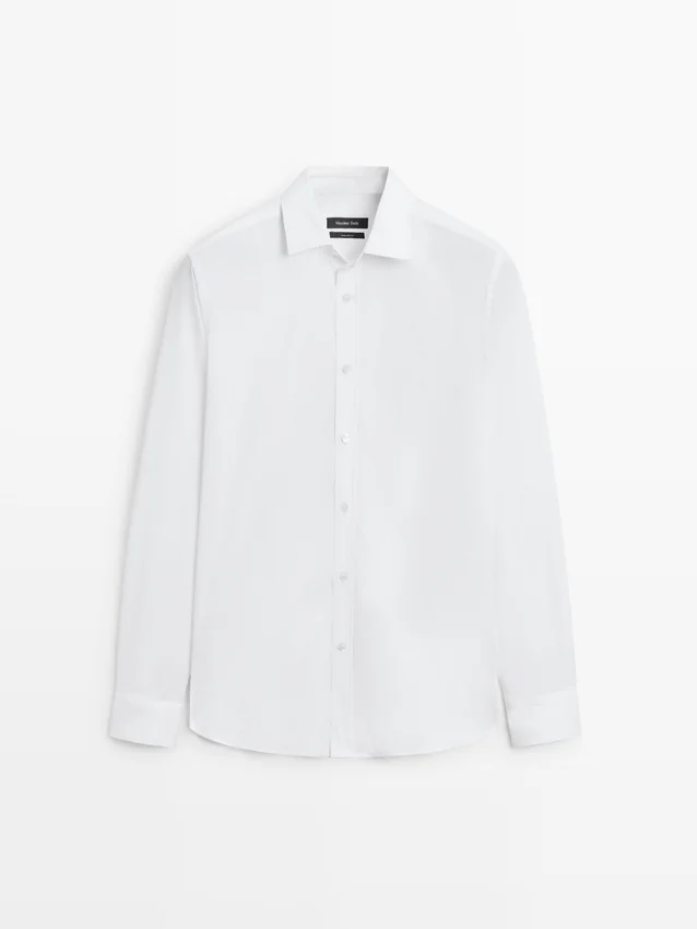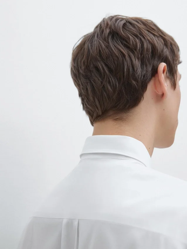 Overhemd gemaakt van stretchstof. Overhemd met slanke pasvorm: deze pasvorm heeft een licht getailleerd silhouet, dat nauw aansluit rond de romp, schouders en armen, wat zorgt voor een meer gedefinieerd en slank uiterlijk. Overhemd gemaakt van katoenmix. Lange mouwen met manchetten met knopen. Overhemdkraag. Knoopsluiting aan de voorkant.
