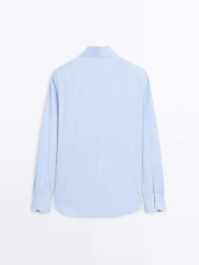 Slim fit overhemd: deze pasvorm heeft een licht getailleerd silhouet, dat nauw aansluit rond de romp, schouders en armen, wat zorgt voor een meer gedefinieerd en slank makend uiterlijk.