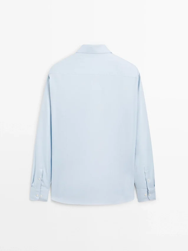 Slim Fit-overhemd: Deze pasvorm heeft een licht getailleerd silhouet, dat nauw aansluit rond de romp, schouders en armen, wat zorgt voor een meer gedefinieerde en slankmakende look. Lange mouwen met manchetten met knopen. Oxfordkraag. Knoopsluiting aan de voorkant.