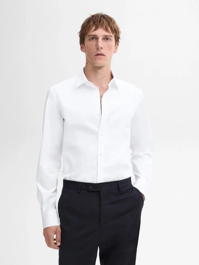 Slim Fit-overhemd: deze pasvorm heeft een licht getailleerd silhouet, dat nauw aansluit rond de romp, schouders en armen, wat zorgt voor een meer gedefinieerde en slankmakende look. Lange mouwen met manchetten met knopen. Oxfordkraag. Knoopsluiting. Strijkvriendelijk.
