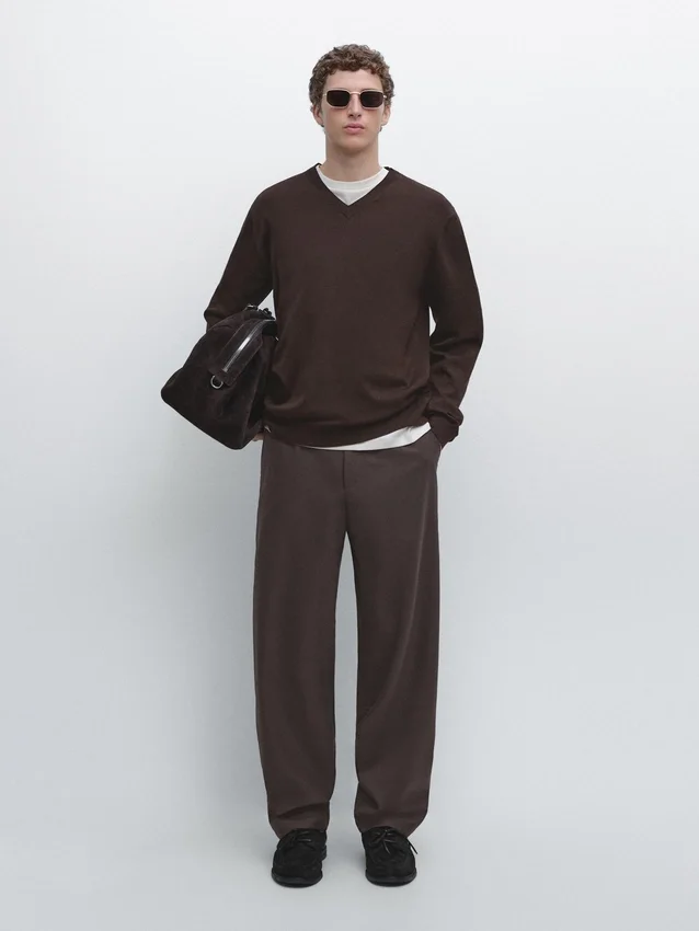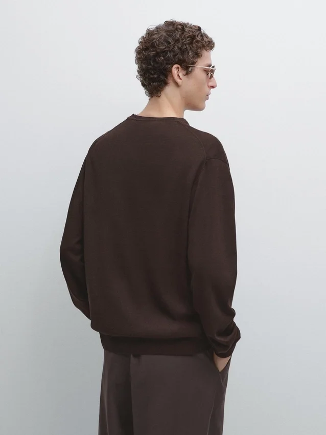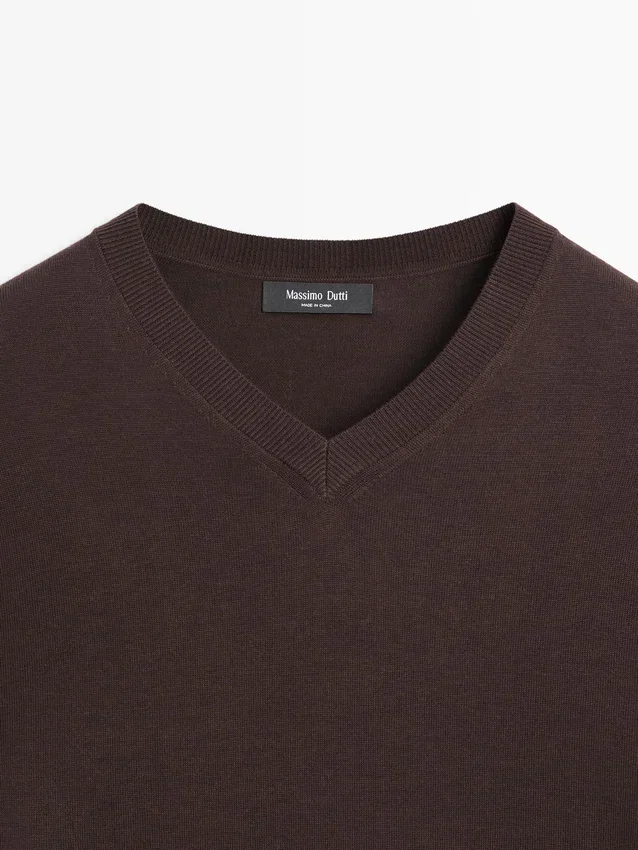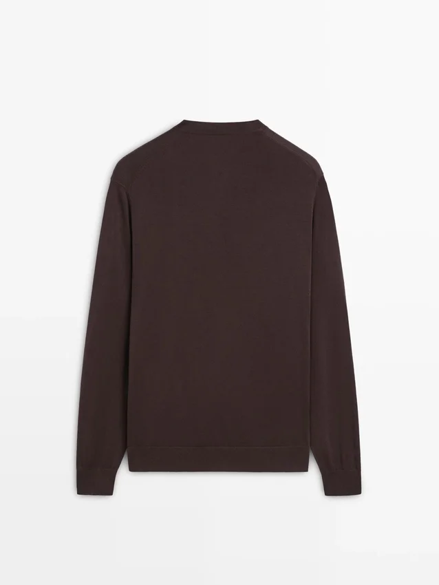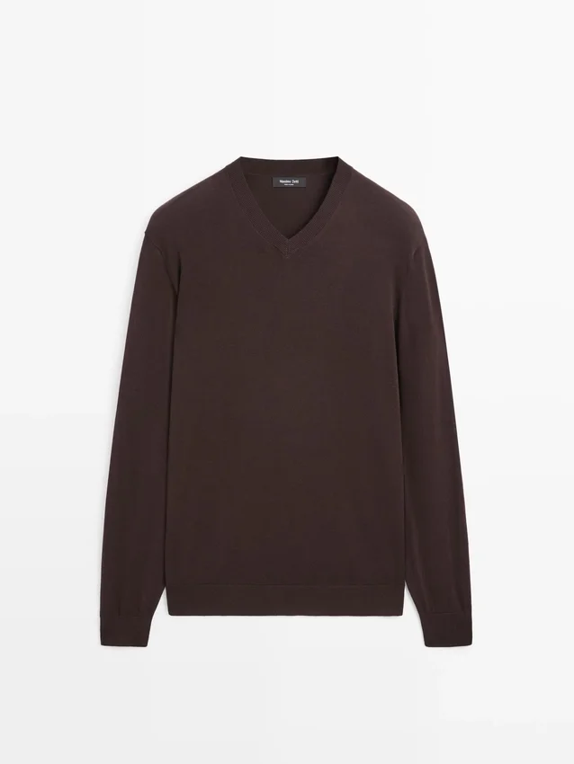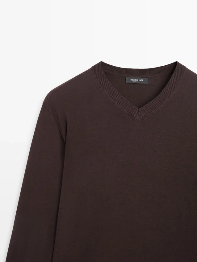 Gebreide trui van katoenmix. V-hals. Lange mouwen.