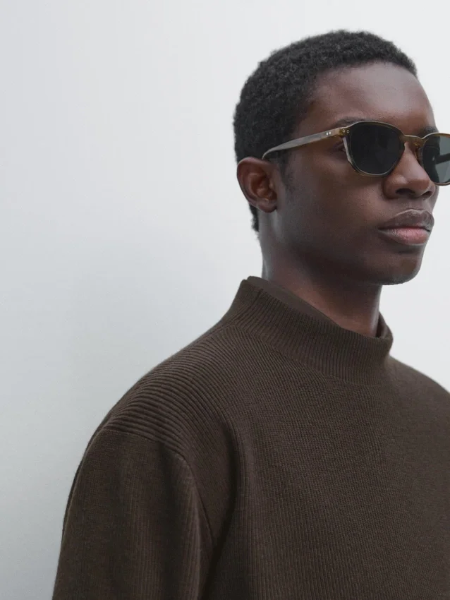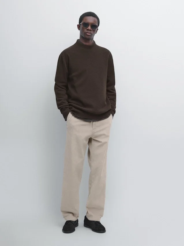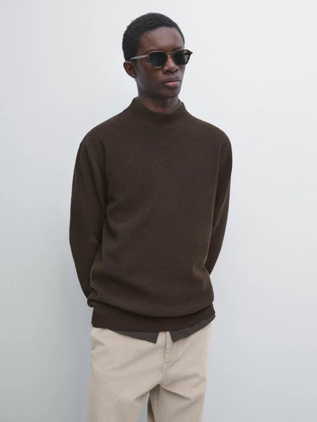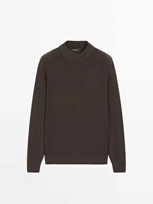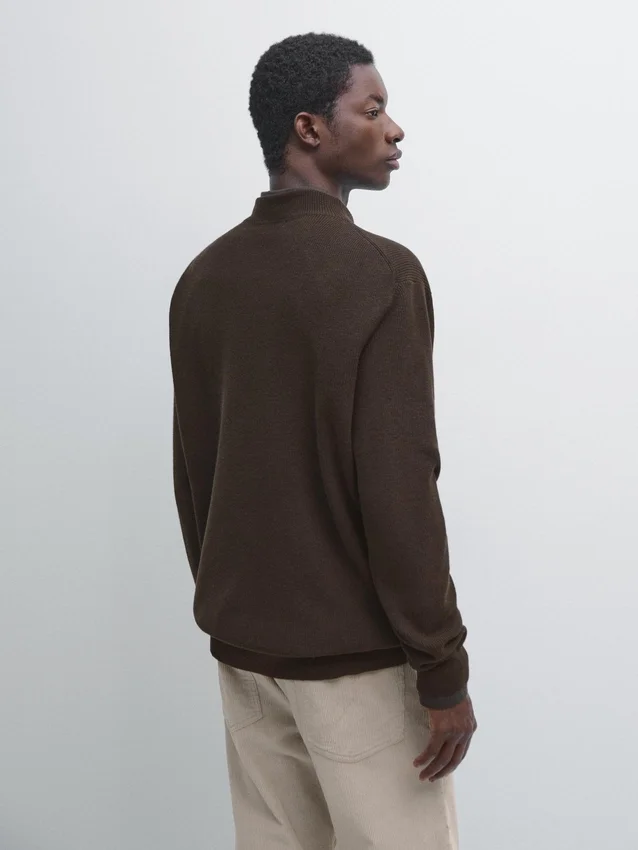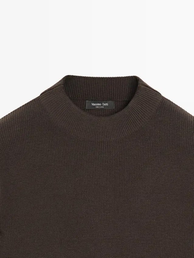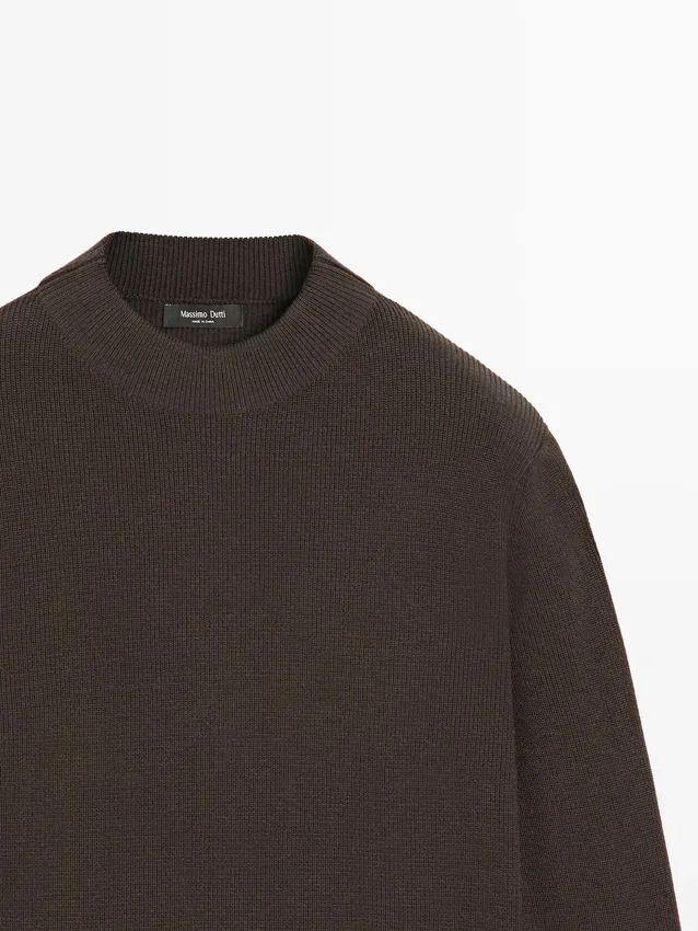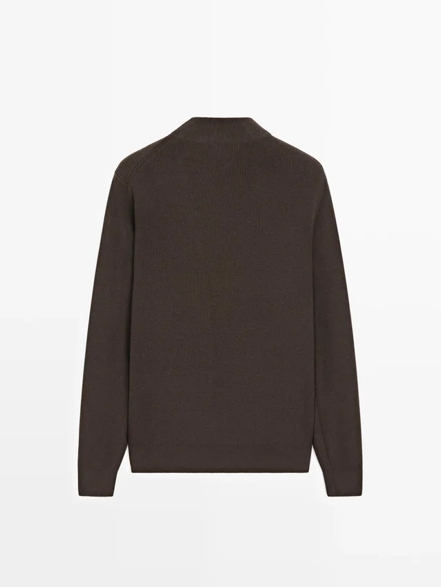 Schijn-col. Lange mouwen. Geribde boorden.