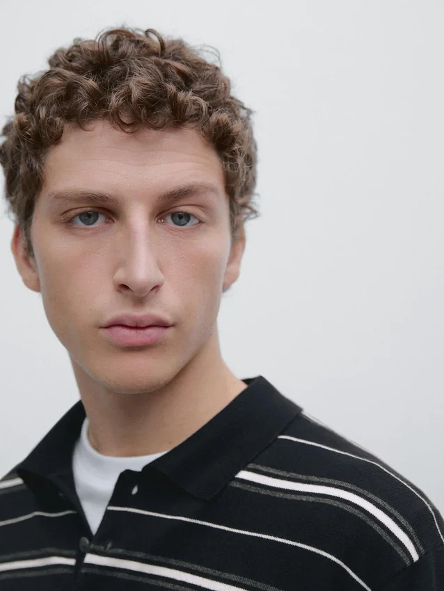 Lange mouwen. Polo’s met knoopsluiting. Gestreepte print.