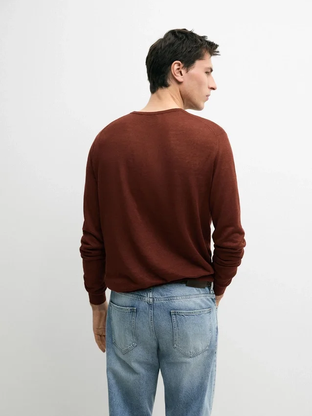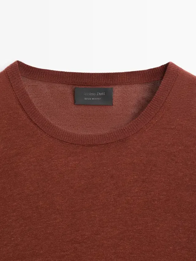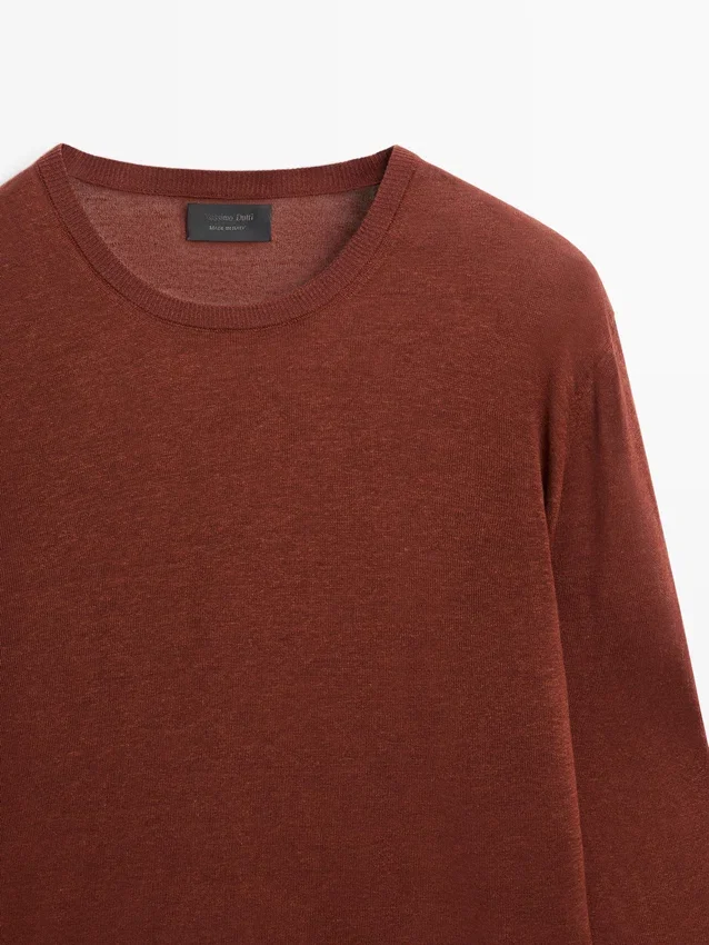 Trui gemaakt van 68% linnen, 22% kasjmier en 10% zijde. Ronde hals. Lange mouwen. Geribde boorden. Het bevat een lichtgewicht garen dat frisheid, zachtheid en een soepele valling combineert. Materiaal dat een textuur met karakter en een gepolijste afwerking biedt, ideaal voor wie prioriteit geeft aan kwaliteitsstoffen en het gevoel van comfort. Gemaakt in Italië.