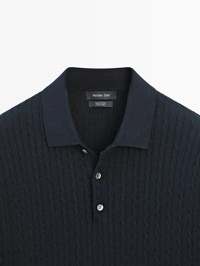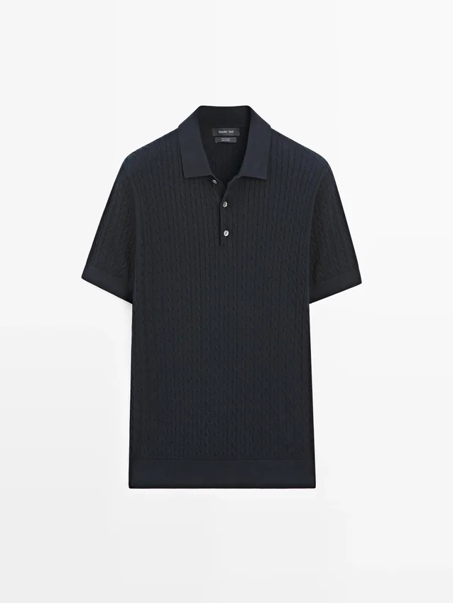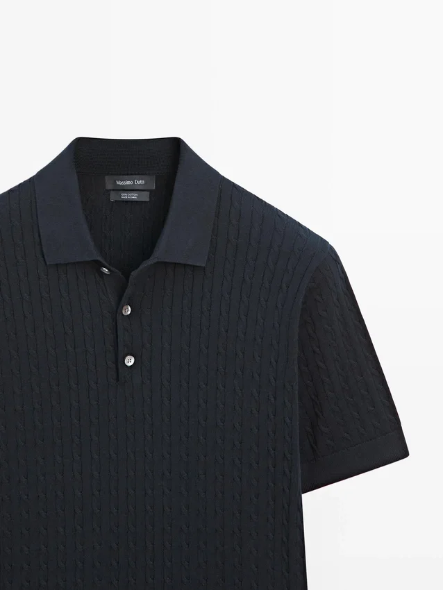 100% katoenen poloshirt met kabelpatroon