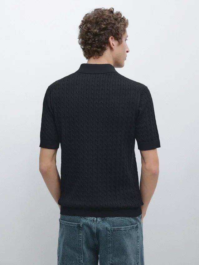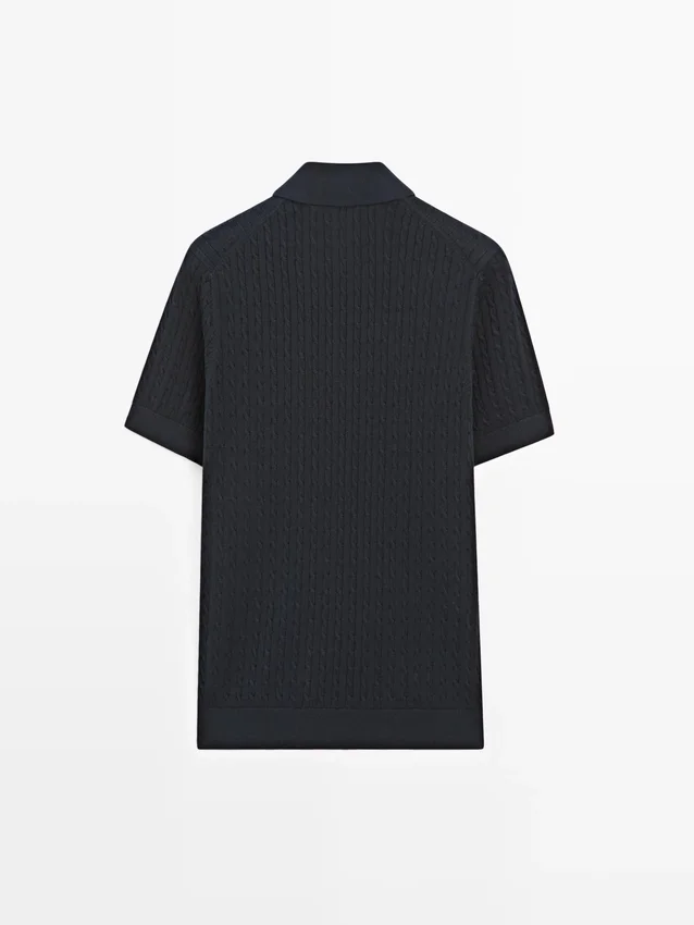Overhemd gemaakt van 100% katoenen gebreide stof. Korte mouwen. Polokraag met knoopsluiting. Gevlochten detail.